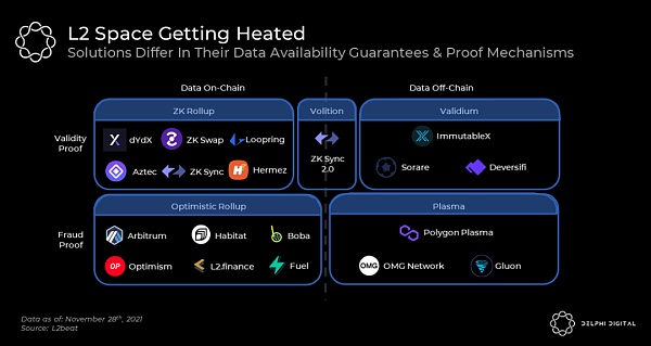 与 Optimistic rollup 上的欺诈证明不同,来自 ZK-rollup 的有效性证明还支持一种新的可扩展性解决方案,称为 volition。尽管volition的全部影响还有待观察,但它们似乎非常有希望,因为它让用户可以自由决定是在链上还是在链下发布数据。这允许用户根据其交易的类型决定它们的安全级别。zkSync 和 Starkware 都将在接下来的几周/几个月内推出 volition方案。